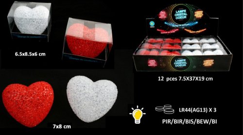 Herz Rot Kristall nachahmung mit LED Licht in Einzel box 2/f ca. 8cm 12er T-Dsp.