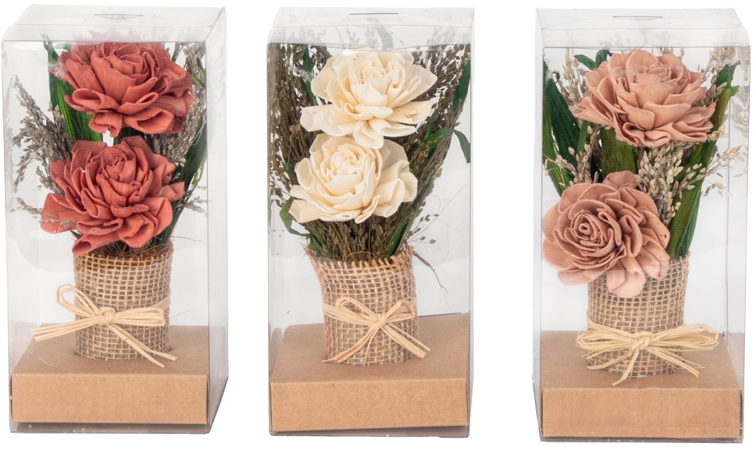 Trockenblumen-Gesteck 3/s mit Roten, Weißen & Rosa Blumen gepackt in PVC-Box ca. 20,5cm