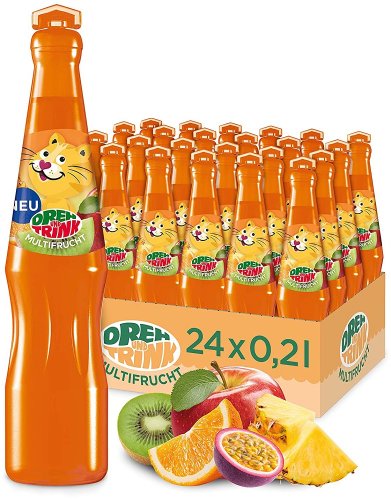 Dreh und Trink Multifrucht Geschmack In Kunststoff-Flasche mit Drehverschluss. 200ml Pfandfrei