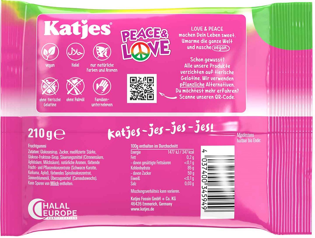 Katjes Peace&Love, fruchtig süßer Fruchtgummi Mix. Für Veganer geeignet im 210g