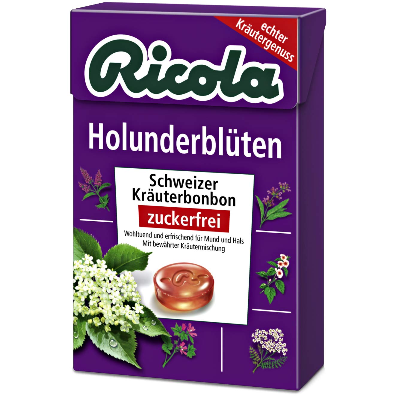 Ricola Holunderblüten-Extrakt Zuckerfreie Schweizer Kräuterbonbons 50g im 20er T