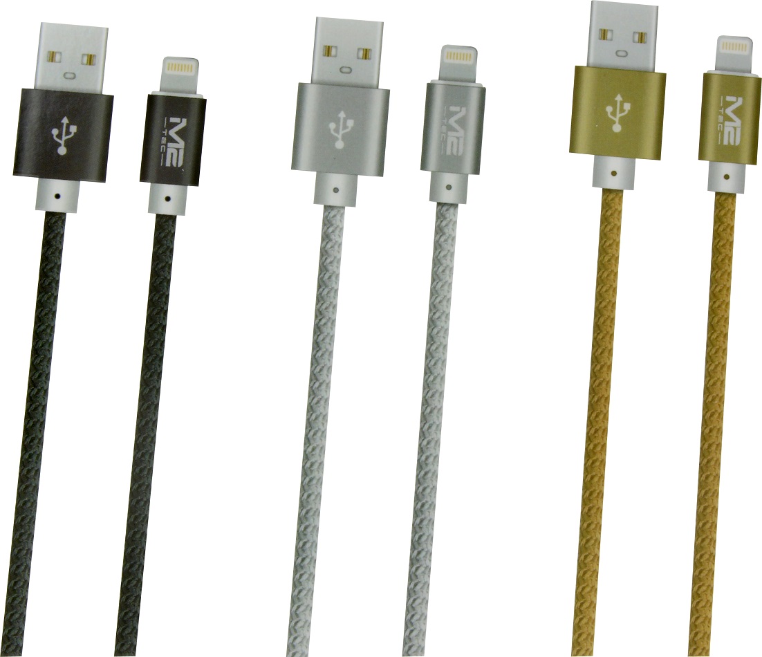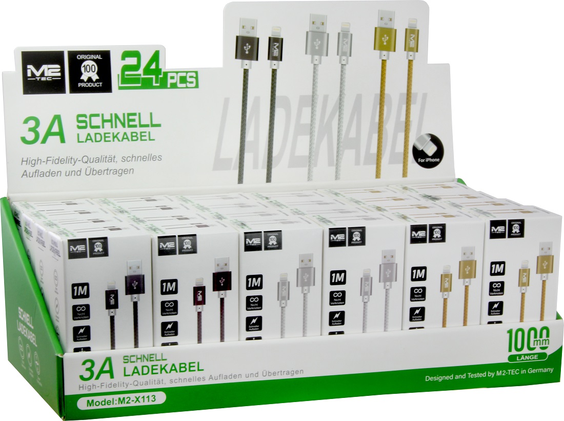 Schnell-Ladekabel Fast Charging Lightning Ladekabel 3A geflochten 1m 3/s (Schwarz, Silber, Gold) in 24er T-Dsp.