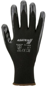 Nitril-Handschuh Polyester Farbe SCHWARZ Handrücken offen EN388:2016 Kat2(3.1.3.