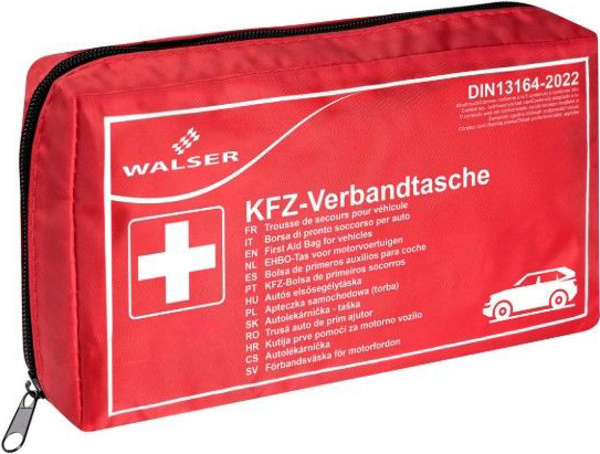 Verbandstasche Rot Walser ca. 23 x 13 x 5,5cm 25tlg. nach DIN 13164:2022 erfüllt den §35h der STVZO, alle Füllmaterialien nach deutscher DIN 13164 inkl. 2x medizinische Mund-Nasen-Masken (min. Typ I, nach DIN EN 14683)