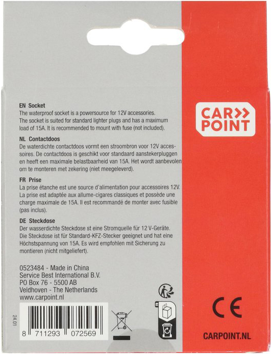 Carpoint 1-Wege Aufputz Steckdose mit 12 / 24V Anschluss maximale Belastung 15A, für Standard 21mm Zigarettenanzünder-Stecker