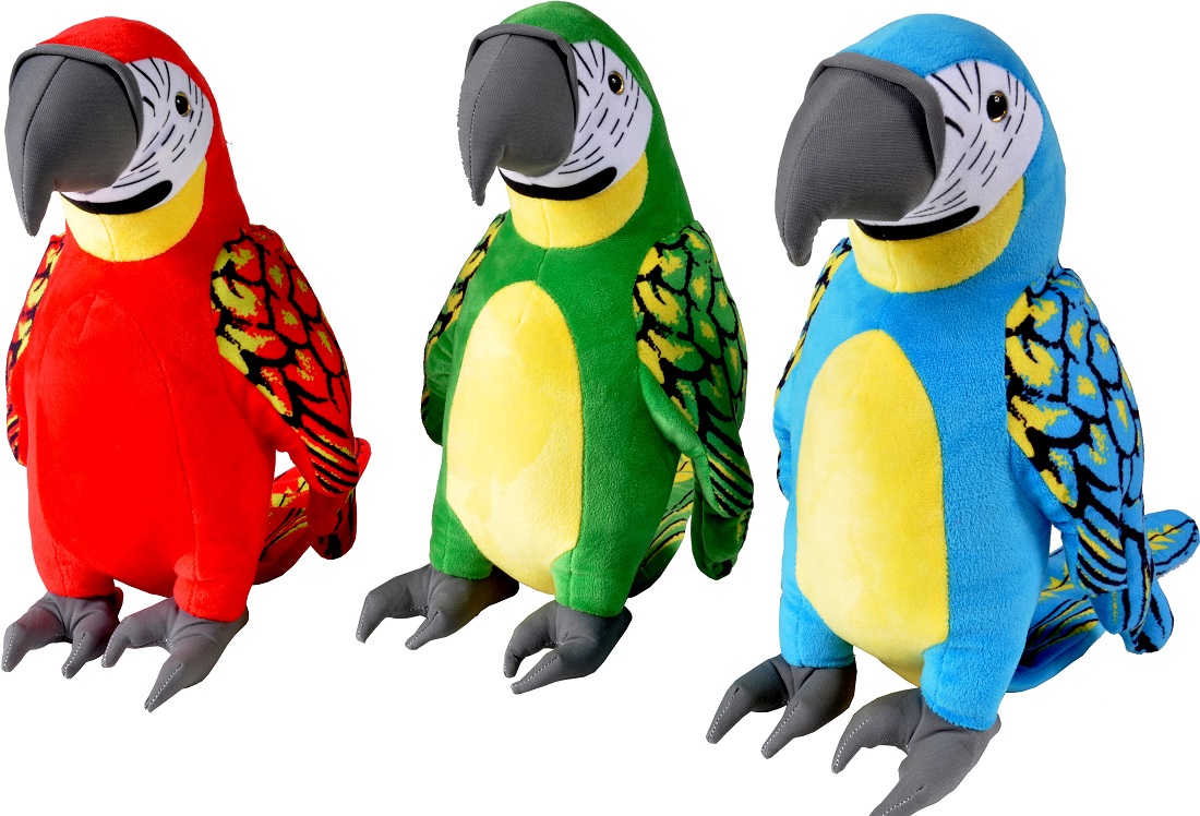 Plüsch Papagei stehend mit GlitzerAugen 3/s ca. 34cm (Rot, Grün, Blau)