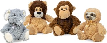 Plüsch Wildtiere sitzend 4/s ca. 25cm (Elefant, Löwe, Affe, Faultier)