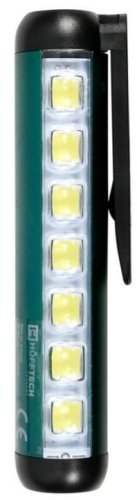 LED Taschelampe Höfftech Wiederaufladbar kompakt mit Magnetclip 7x SMD + LED Batterie: 14500 Lithium / 400 mAh mit Typ-C-Kabel 4 Modi ca.11cm Einzelbox 24er T-Dsp.