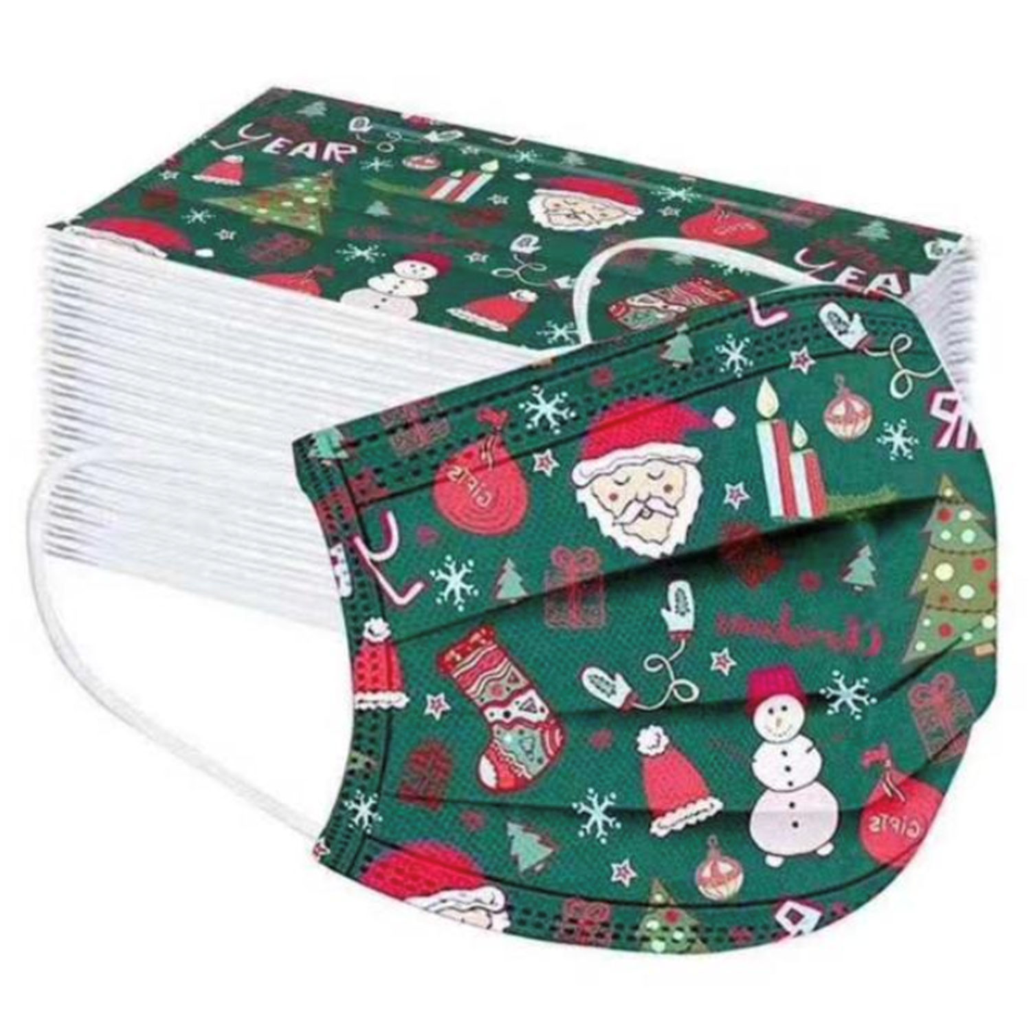 Mund Nasen Maske 3-lagig WEIHNACHTEN/CHRITSMAS Motiv mit Nasenbügel&Ohrschlaufen Einheitsgröße 10x5 Stück abgepackt im 50er Box