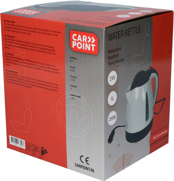 Carpoint Wasserkocher 24V 250W 1 Liter, mit Trockengehschutz & Abschaltautomatik, Ideal für die Verwendung im PKW, LKW, Boot oder auf dem Campingplatz