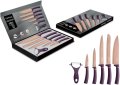 Messerset lila/gold Cheffinger 6 tlg. in Magnetic Box mit Kochmesser, Brotmesser