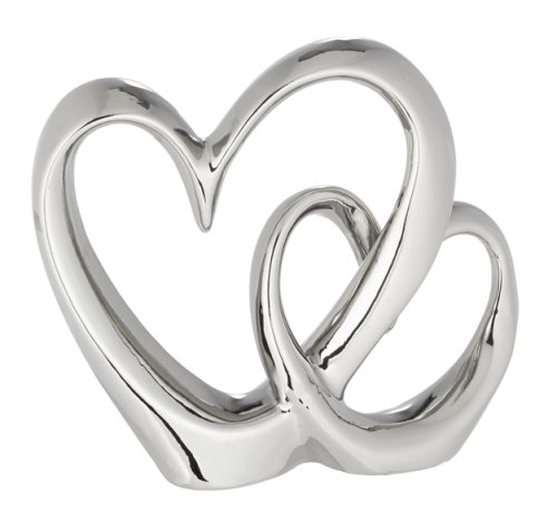 Doppel Herz Silber Steingut B:19cm H:16,5cm T:7cm