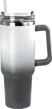Thermobecher To-Go Grau / Weiß verlaufend inkl. Strohhalm 1182ml Füllmenge ca. 28 x 10cm; Material: ss304(innen) + ss201(außen)