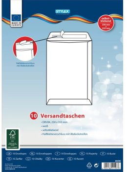 Stylex Versandtaschen in Weiß DIN B4 25 x 35,3cm ohne Fenster haftklebend 10er Packung