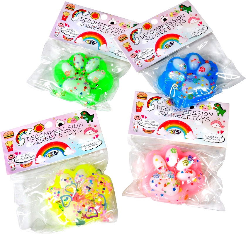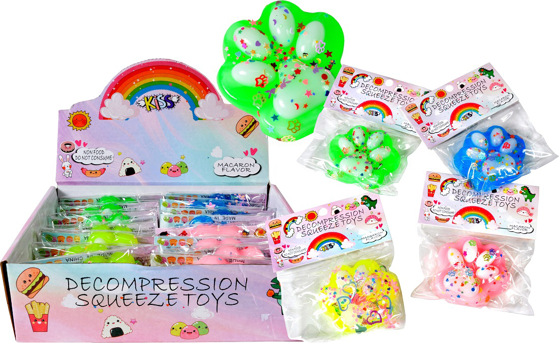 Squishy Glibber Pfote Squeeze Toys ca. 7,5cm 4/s im 16er T-Dsp. (Grün, Blau, Gel