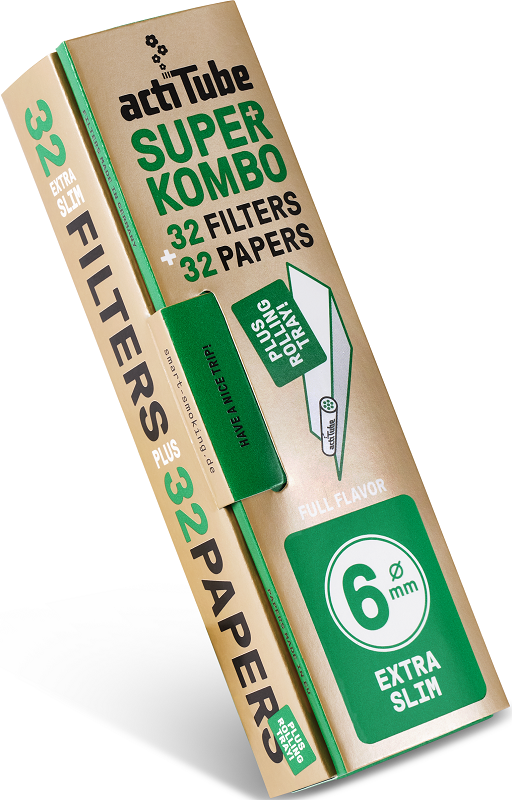 ACTITUBE Superkombo 6mm EXTRA SLIM Filters + Papes mit Rolling Tray, je Heftchen