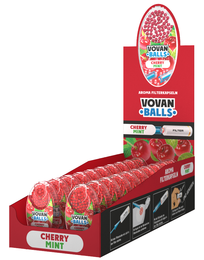 CHERRY MINT Aromakapseln Vovan Packung mit 100 Kapseln für Zigaretten, Zigarillo