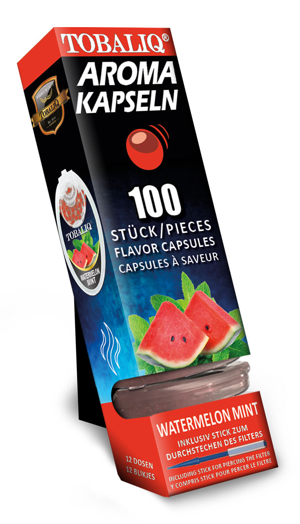 WATERMELON MINT Aromakapseln Tobaliq Packung mit 100 Kapseln für Zigaretten, Zigarillos und IQOS Sticks 12er T-Dsp