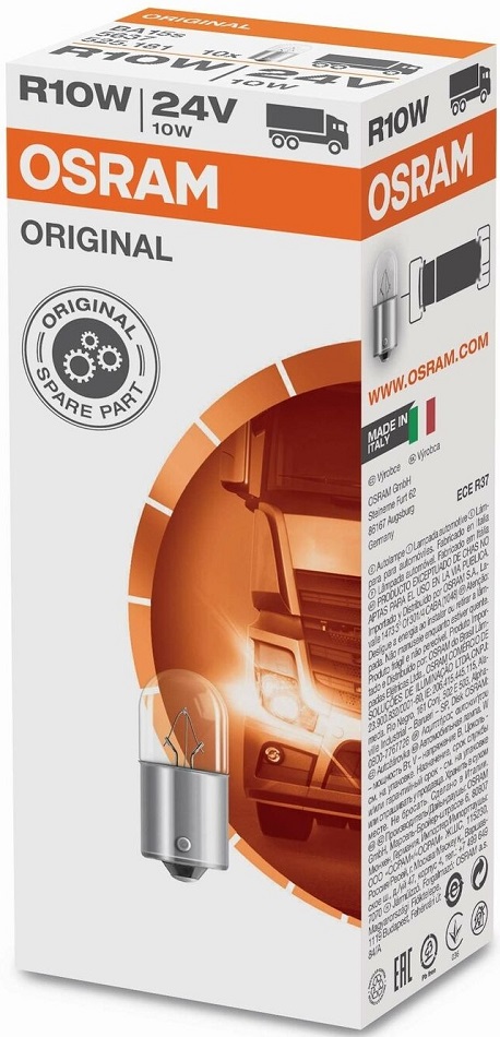 Osram R10W 24V - 10W Orginal LKW Schlusslicht/Kennzeichen/Park- / Postionslicht- Standard BA15s 10er Faltschachtel