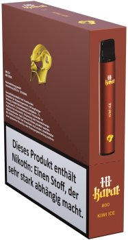 18 Karat E-Shisha KIWI ICE - Nikotin 2ml Liquid Nic-Salt 16mg/ml ca. 800 Züge 400mAh Einweg-Pos System TPD konform 5er T-Dsp.(mit Steuerbanderole)