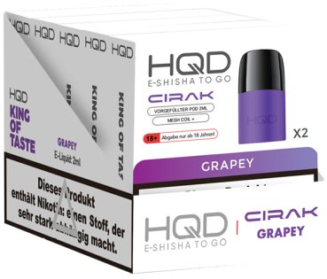 HQD Cirak Prefilled Pod GRAPEY ca. 600 Züge - Nikotin 2ml Liquid Nikotin 18mg/ml Prefilled-Pod System TPD konform 2er Pack im 5er T-Dsp.(kompatibel mit allen Cirak Basisgeräten)(mit Steuerbanderole)
